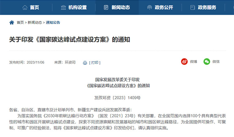 近日,國家發(fā)展改革委近日印發(fā)《國家碳達峰試點建設(shè)方案》(以下簡稱“方案”), 將在全國范圍內(nèi)選擇100個具有典型代表性的.....